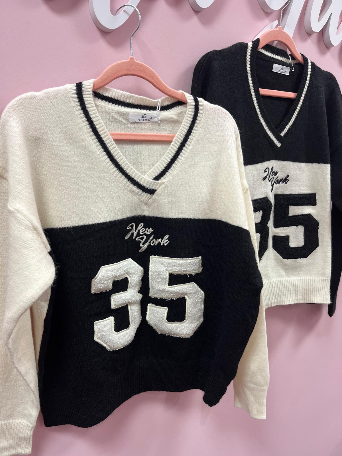 Jersey pico con aplique bordado delantero, talla unica hasta 40 aproximadamente